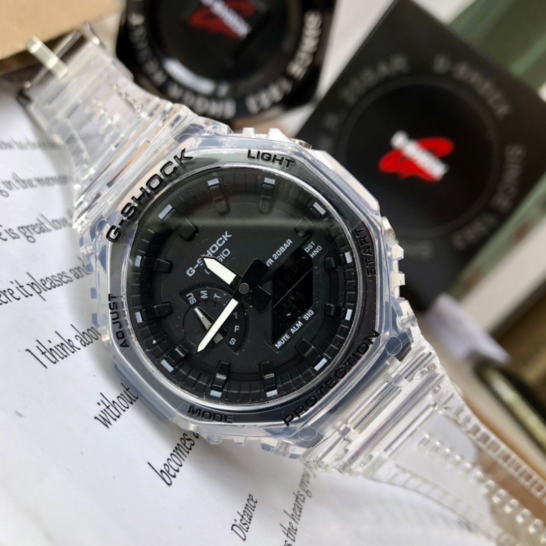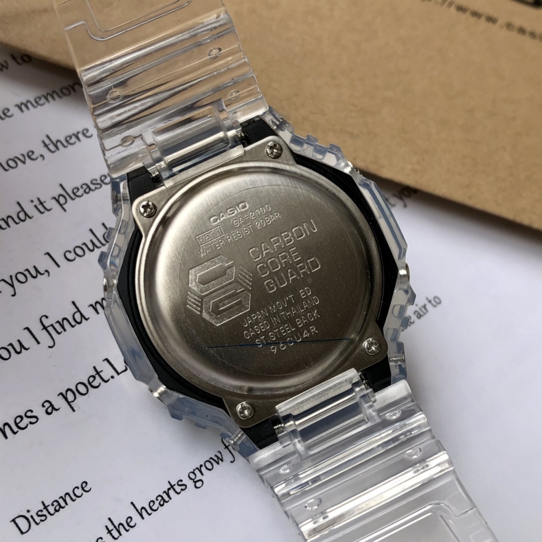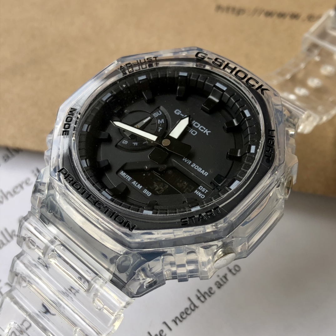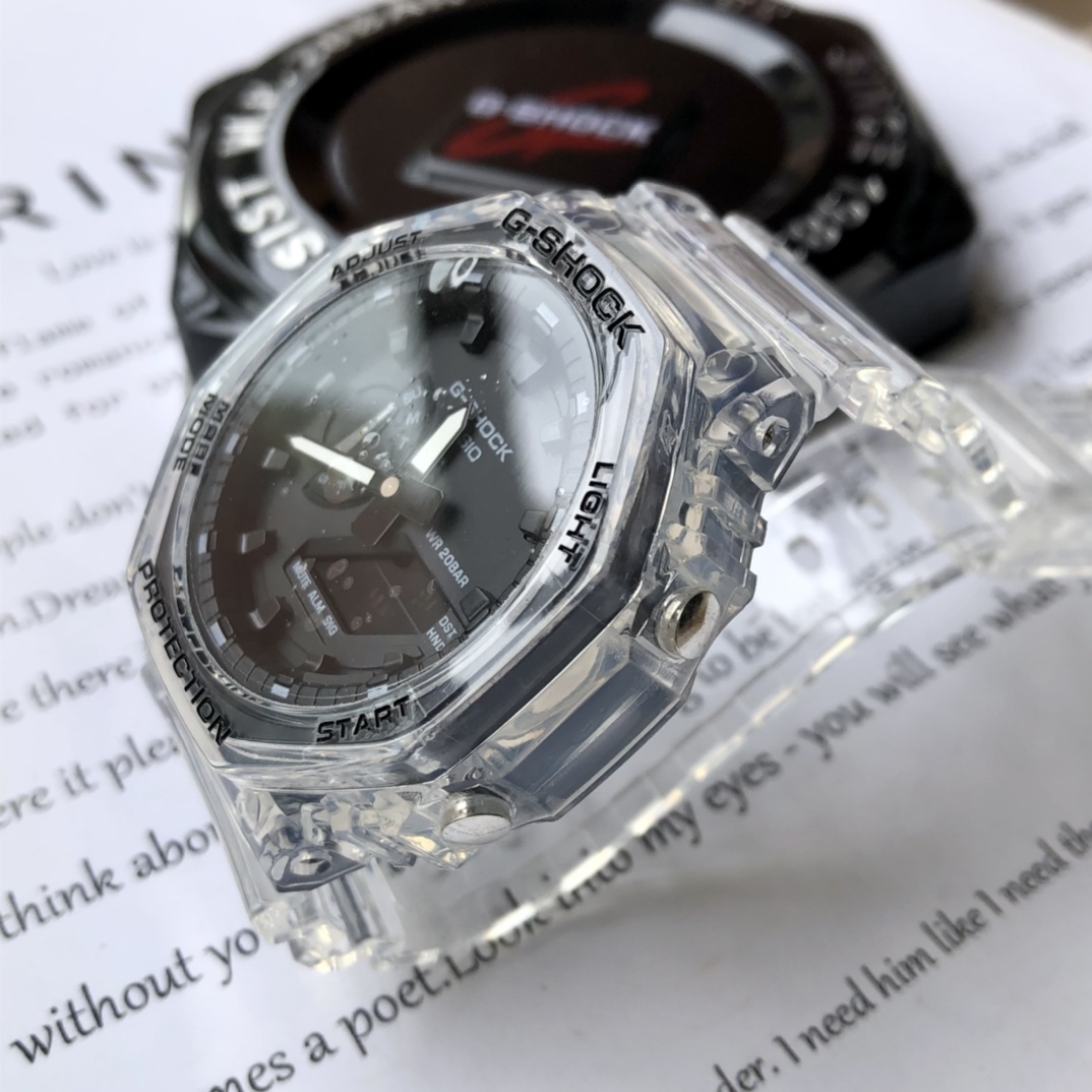 批💰配盒 支持香港、美国直邮爆款出货!卡西欧G-SHOCK新款小方块冰韧系列!新款GA-卡西欧八角形款,超薄表盘,小红书渠道货源,遇水镜面变透明,表带单扣设计,简易显屏,得物(毒)APP几率过验,想入手一块赶紧下单吧!主要功能:防震,米防水,高亮度自动LED照明世界时间(城市) 秒表(\/秒) \/小时时制 每日闹铃,整点响报 倒计时 全自动日历!