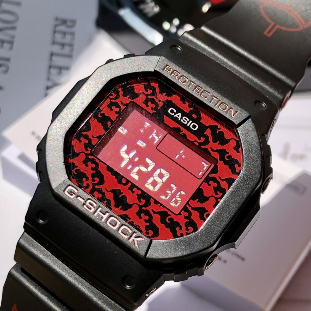 批💰配盒全新上市!CASIO 卡西欧G-SHOCK·火影忍者疾风传联名第二弹,本叶飞舞之处,火亦生生不息,当G-SHOCK与卡卡西和带土相遇,重续一双写轮眼带来的深厚羁绊。实物上手帅炸,潮流达人必备 非常百搭。这款方块不会像其他大G挑人,这款非常复古低调即使上班佩戴也没问题,小方块经典款,日厂机芯,性价比之王!功能齐全,小时指示 倒计时 闹铃 星期显示 背光都有,防砸+防震+防冻+生活防水,进口树脂表壳橡胶表带表面矿物强化玻璃镜面更持久耐用,电子机芯数字显示非常方便,表盘径约mm厚度约mm表带调节长度:.-.cm石英机芯带附加功能、手表镜面材质:矿物强化玻璃镜面,表带材质:树脂 ,生活性防水!