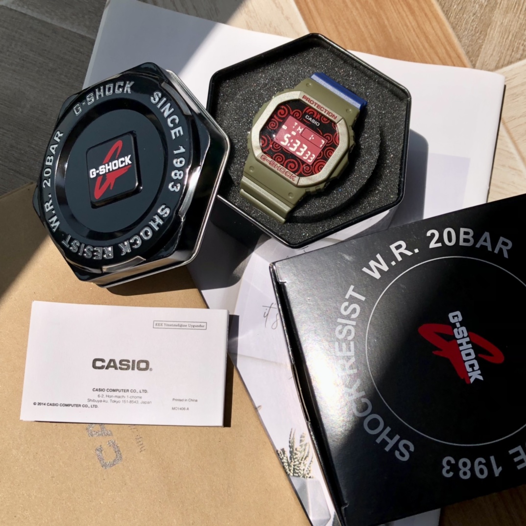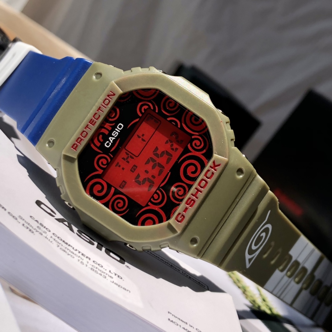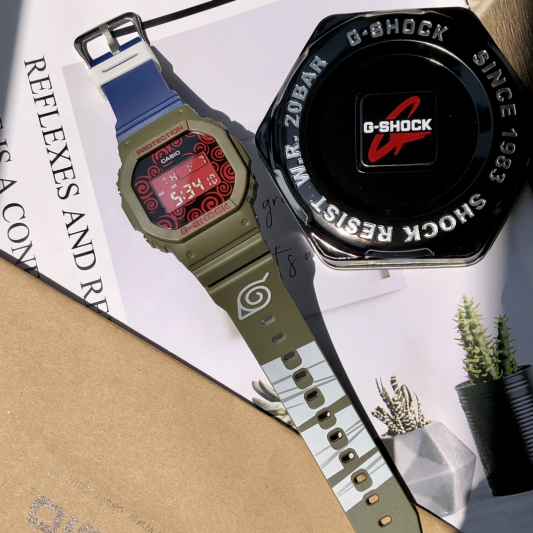 批💰配盒全新上市!CASIO 卡西欧G-SHOCK·火影忍者疾风传联名第二弹,本叶飞舞之处,火亦生生不息,当G-SHOCK与卡卡西和带土相遇,重续一双写轮眼带来的深厚羁绊。实物上手帅炸,潮流达人必备 非常百搭。这款方块不会像其他大G挑人,这款非常复古低调即使上班佩戴也没问题,小方块经典款,日厂机芯,性价比之王!功能齐全,小时指示 倒计时 闹铃 星期显示 背光都有,防砸+防震+防冻+生活防水,进口树脂表壳橡胶表带表面矿物强化玻璃镜面更持久耐用,电子机芯数字显示非常方便,表盘径约mm厚度约mm表带调节长度:.-.cm石英机芯带附加功能、手表镜面材质:矿物强化玻璃镜面,表带材质:树脂 ,生活性防水!